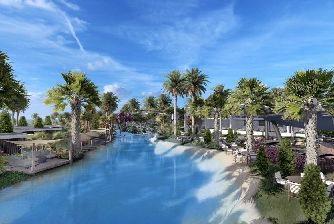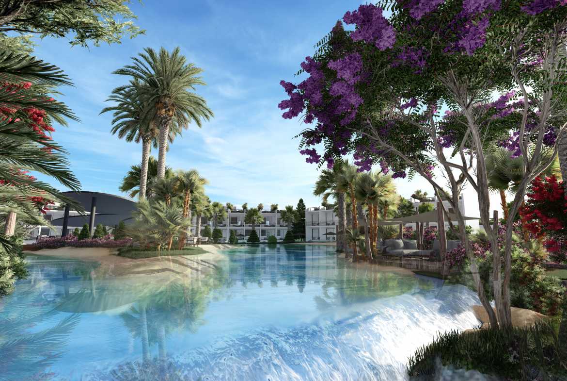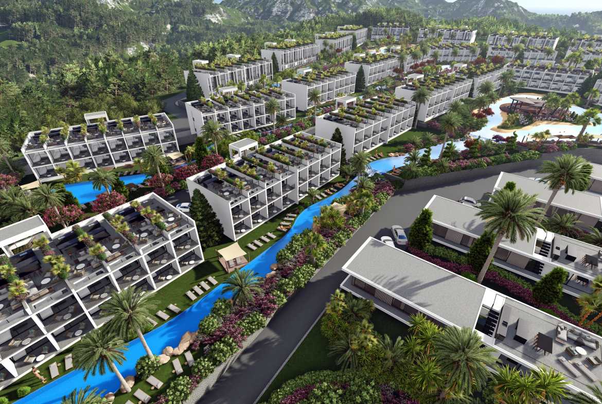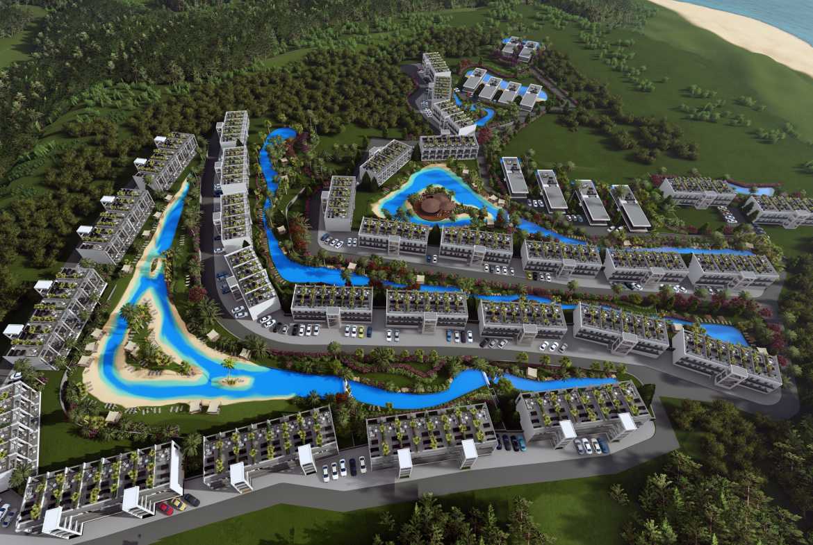 Hawaii Homes is the largest seafront residential project in Cyprus with studios, 1+1, 2+1 attic penthouses and luxury 3 bedroom villas, with a total of 500 apartments. Located on the coast of Tatlisu, the project includes artificial rivers, lakes, and islands scattered throughout the site, with the addition of our famous garden designs. The hotel has a heated indoor pool, spa, restaurant, bar, gym, basketball and tennis courts. The project is scheduled to be completed by the end of 2025.