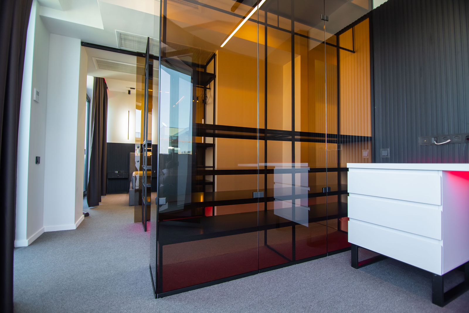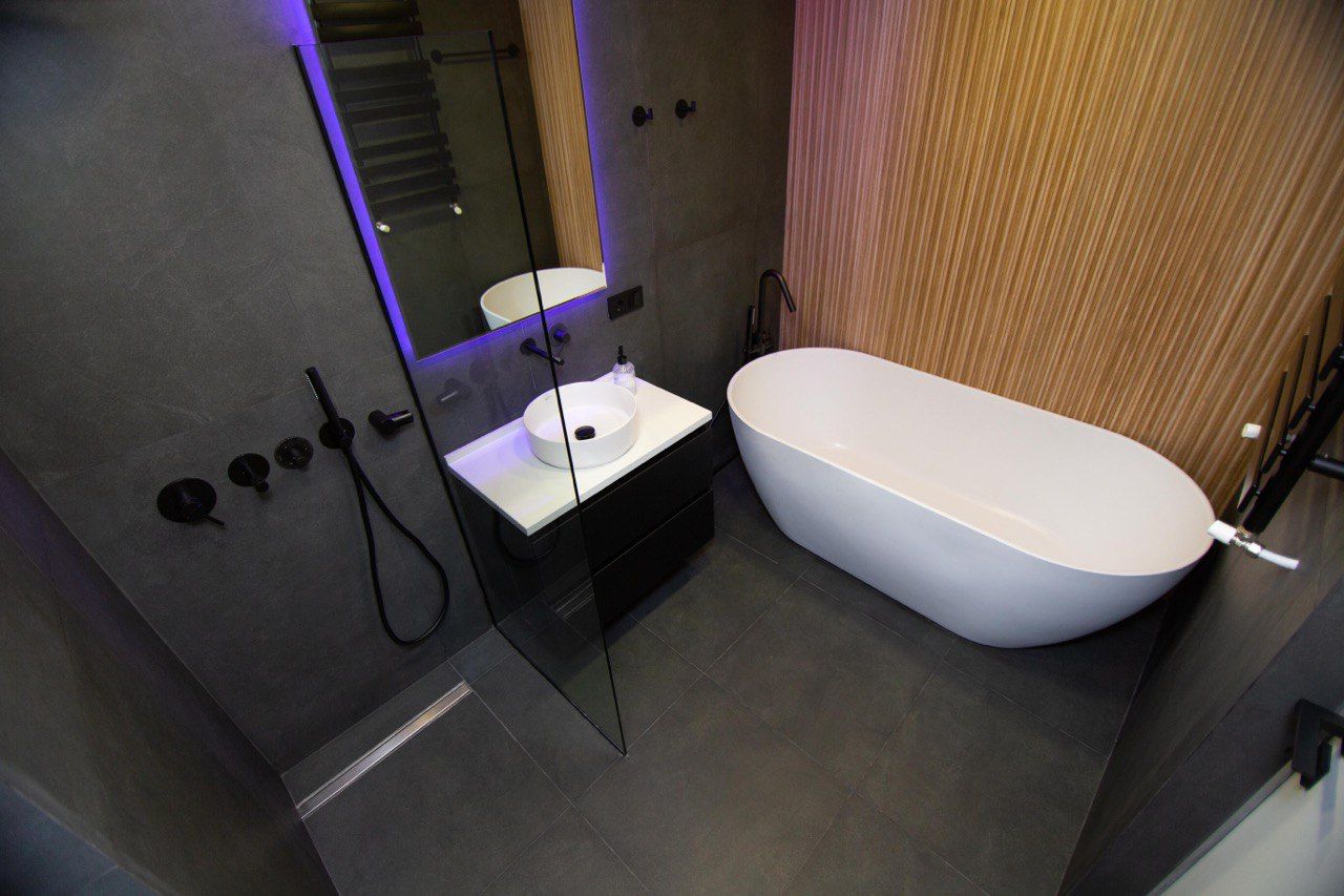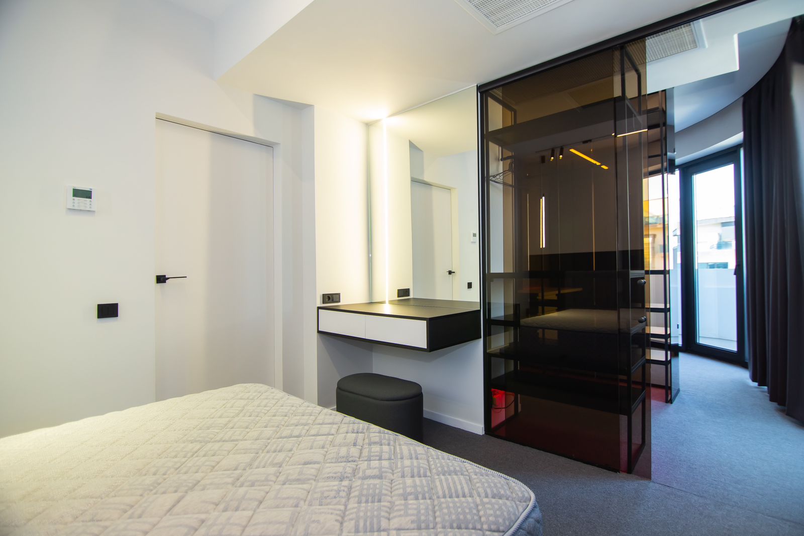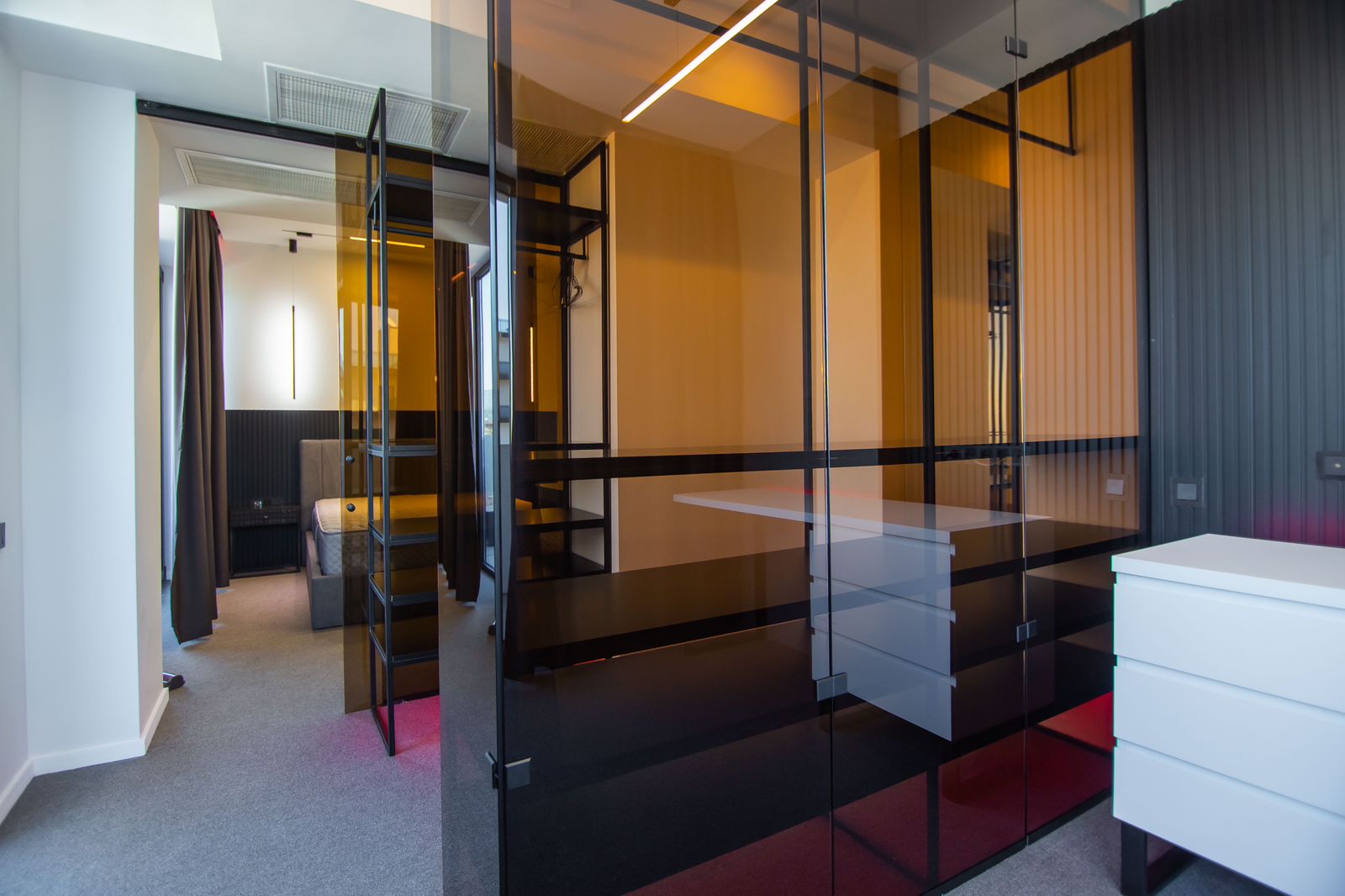 Квартира оснащена полностью умным домом, все продумано до мелочей. Управление регулируется через умную панель на стене, с планшета или телефона.