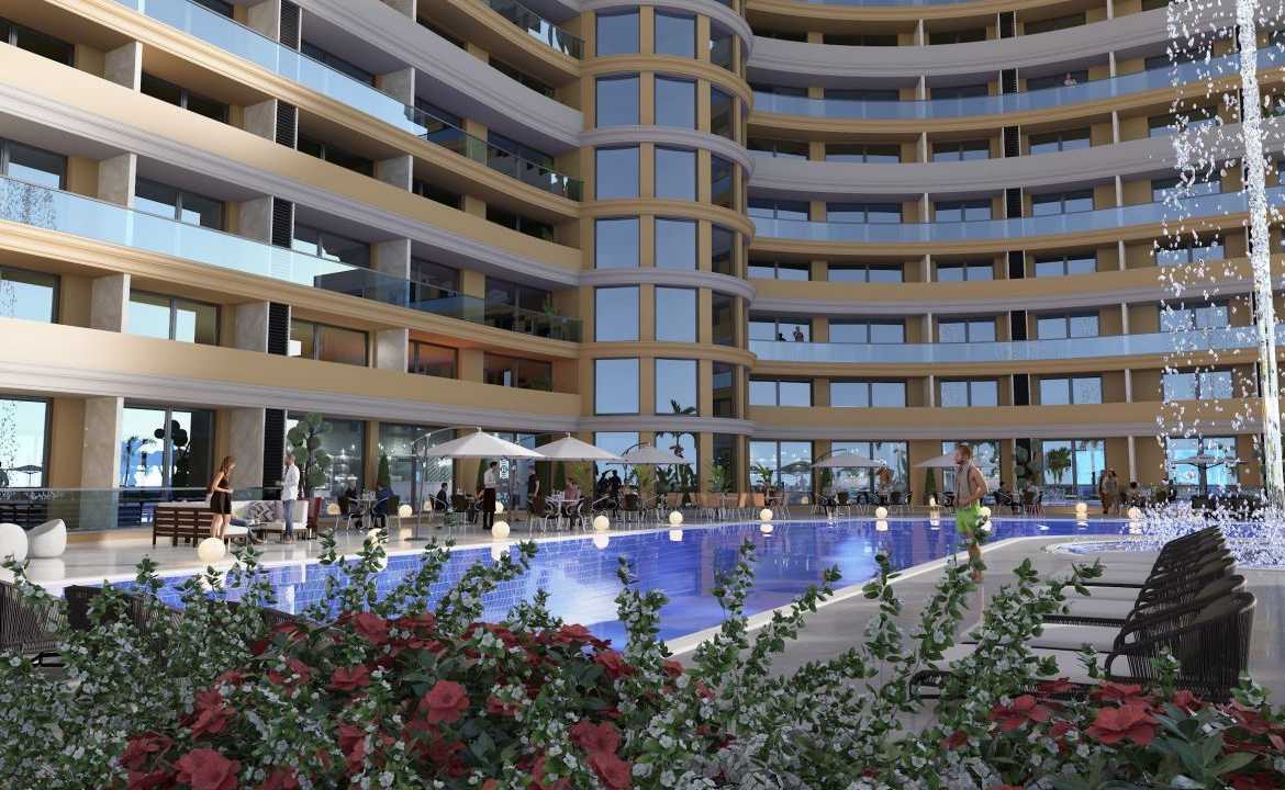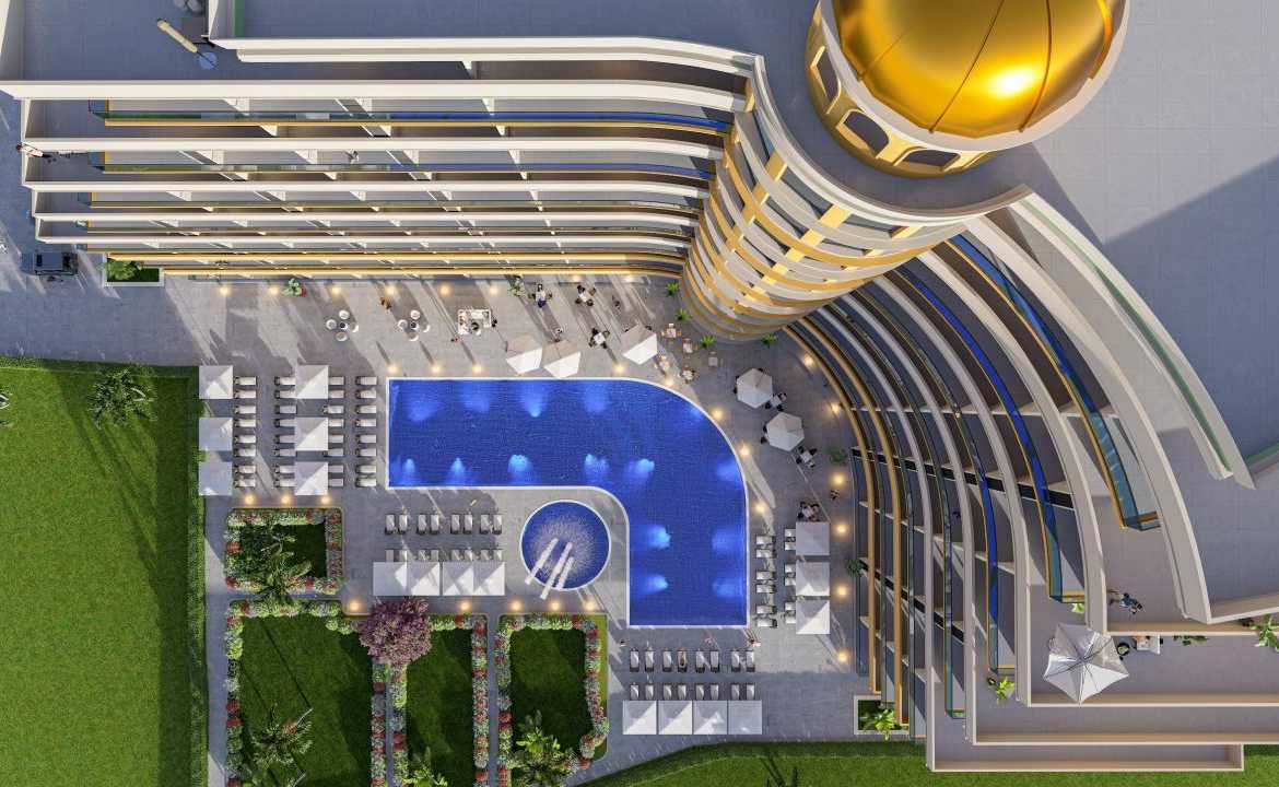 Новый проект Bell Sea состоит из 281 квартиры. Квартиры представлены люксами и однокомнатными. Площадь люксов от 39 до 45 квадратных метров и апартаментов 1+1 от 72 до 85 квадратных метров. Вы можете купить желаемую недвижимость в этом проекте с гостиничной концепцией за наличные и в рассрочку. Срок сдачи проекта — июнь 2025 года.