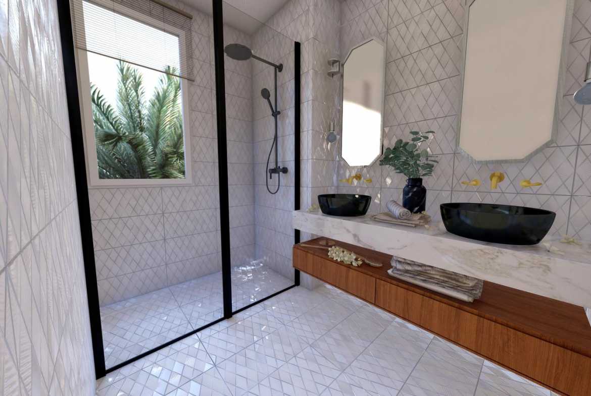 В комплексе будет общий бассейн и зона для отдыха вокруг бассейна. А у каждой виллы еще и свой собственный бассейн 30м2.