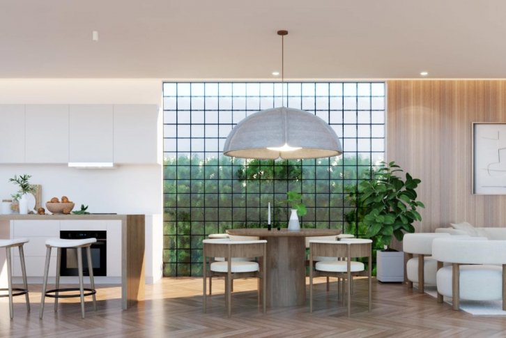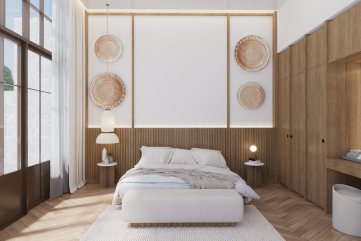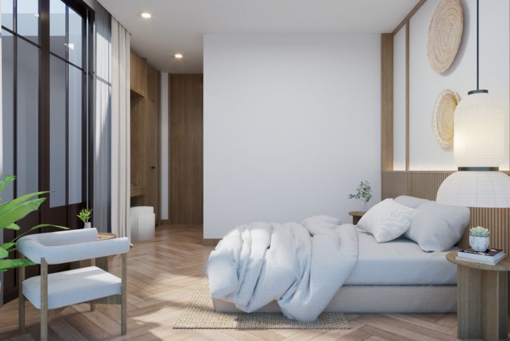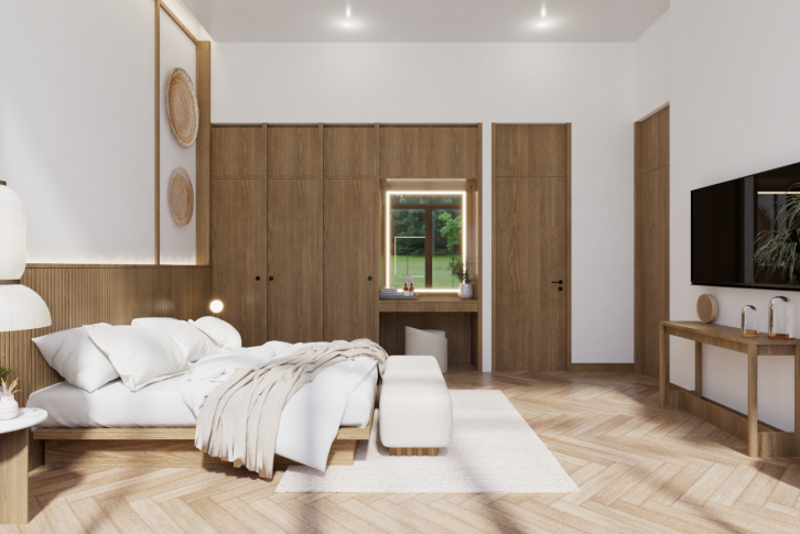 Вилла с двумя обособленными спальнями для комфортного проживания, где просторная гостиная является центром дома.