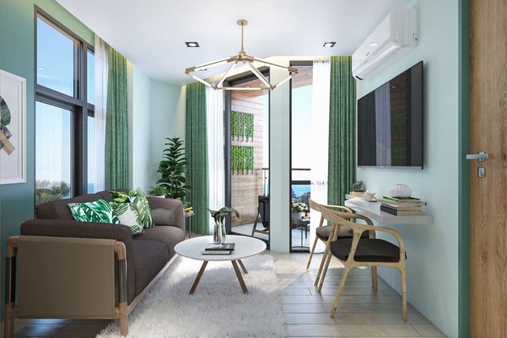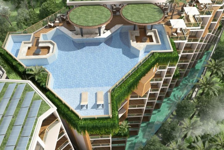 Из квартир будет открываться потрясающие виды на море или горы. Главная концепция этого уникального кондоминиума – экологичность во всём. Это один из немногих проектов, здания которого будут оборудованы зелёными террасами, а территория комплекса полностью утопать в зелени деревьев и разнообразных тропических растений.